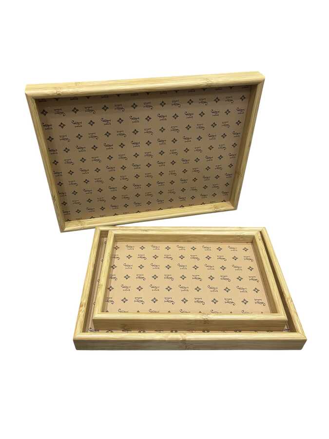 3'lü Bambu Tepsi Seti Deri Altlıklı - 29