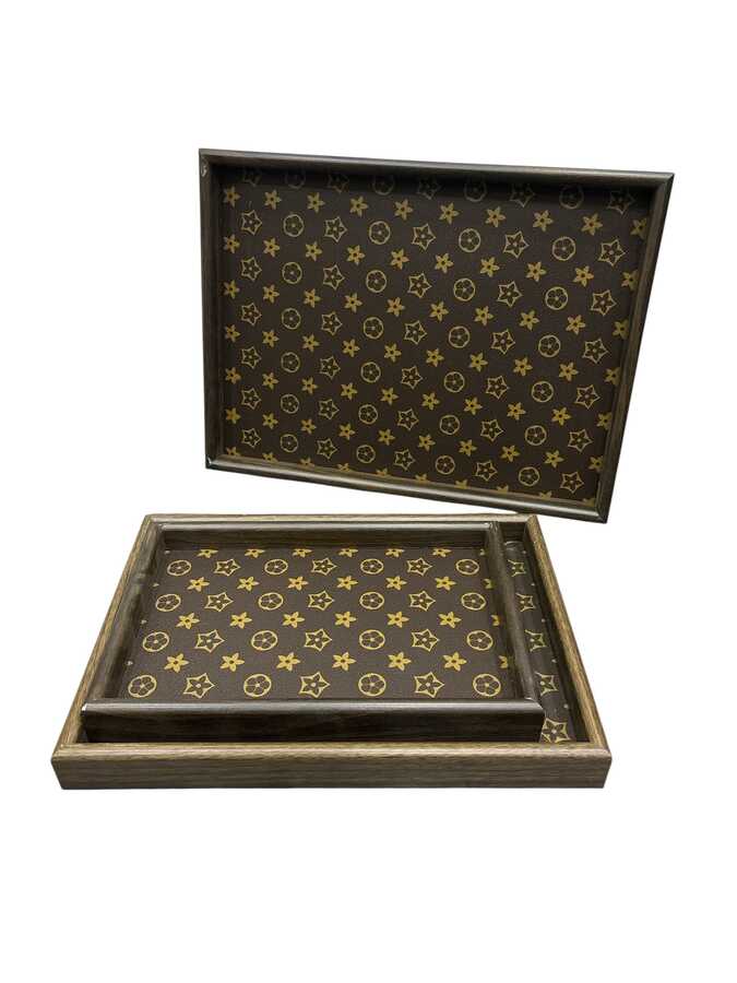 3'lü Bambu Tepsi Seti Deri Altlıklı - 30