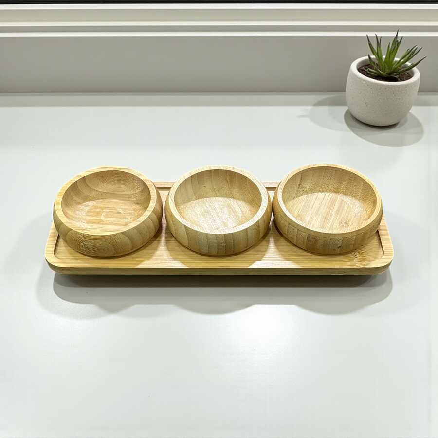 4 Parça Bambu Çerezlik Sosluk Sunum Seti - 51