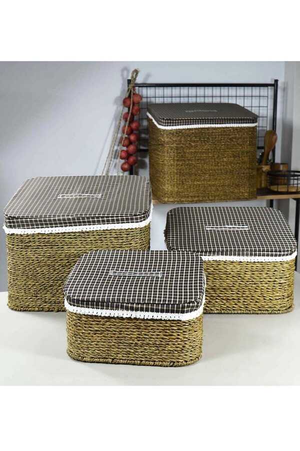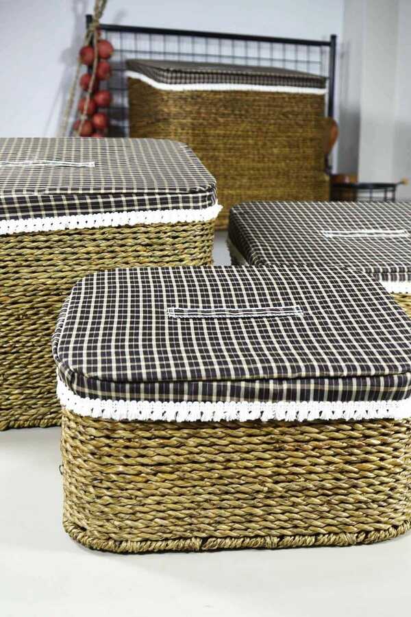 Materyal : Hasır Örme Ebat : Büyük Boy : 49x40x44 cm Orta Boy : 43x36x35 cm Küçük Boy : 38x38x25 cm Mini Boy : 33x25x20 cm