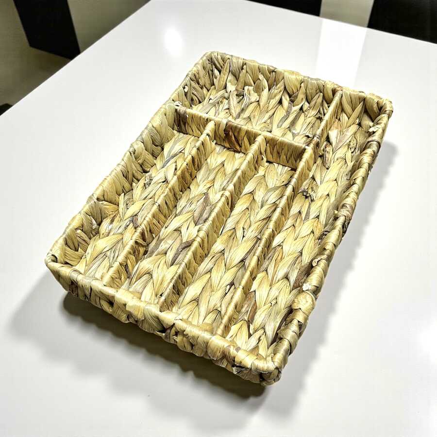 5 Bölmeli Hasır Kaşıklık Düzenleyici , Doğal Çekmece İçi Düzenleyici, Kaşıklık Seti