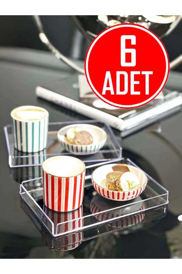 6 Adet Şeffaf Sunum Nişan Kahve Pleksi Tepsisi
