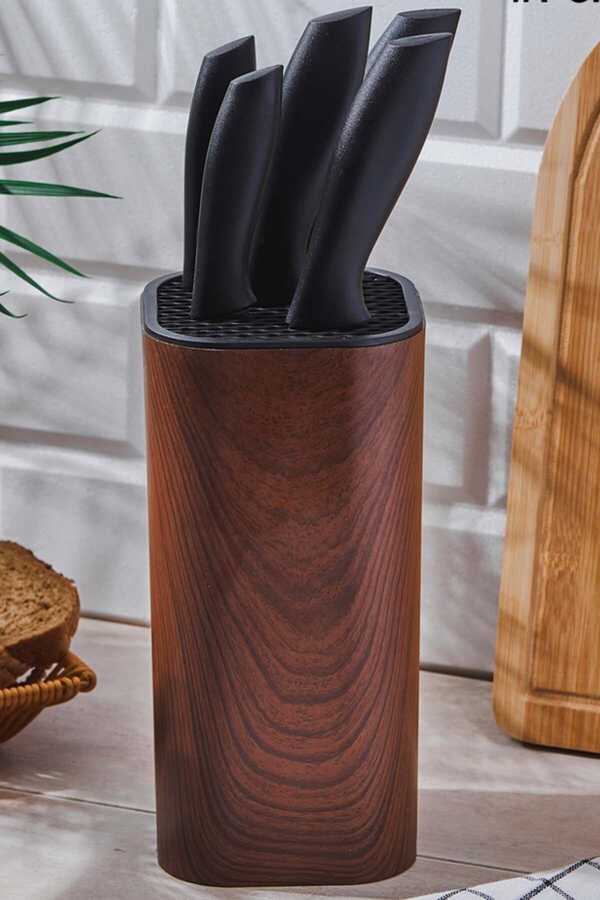 Birinci Kalite Plastik Bıçak Standı. ; Birinci Kalitede Üretilmiş Uzun Ömürlü Kullanıma Uygun Bıçaklar. ; Bıçak Ölçüleri: • 22 cm • 23 cm • 28 cm • 28 cm • 30 cm ;