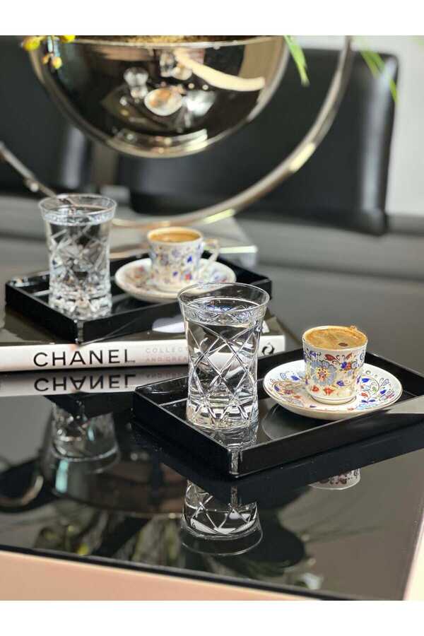 6'LI Siyah Sunum Nişan Kahve Pleksi Tepsi