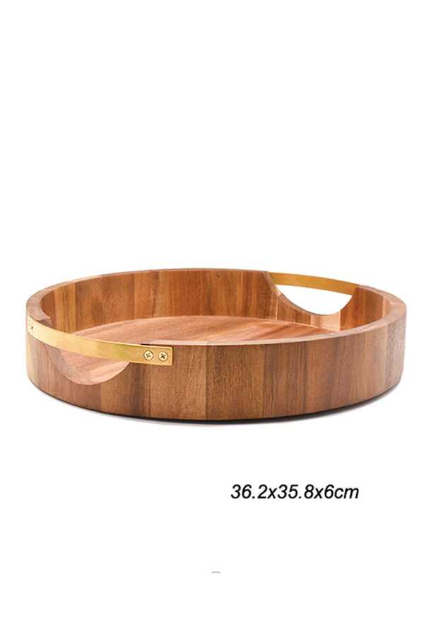 Akasya Yuvarlak Gold Tutmalı Tepsi - 07936