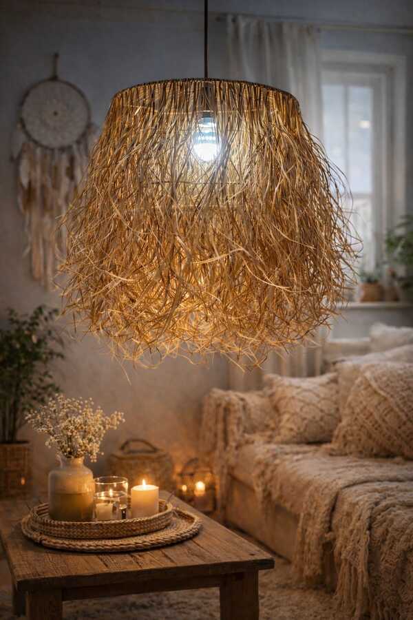 Doğallığı ve şıklığı bir arada arayanlar için hasır avize, dekorasyonunuzu tamamlayan etkileyici bir detay olacaktır.