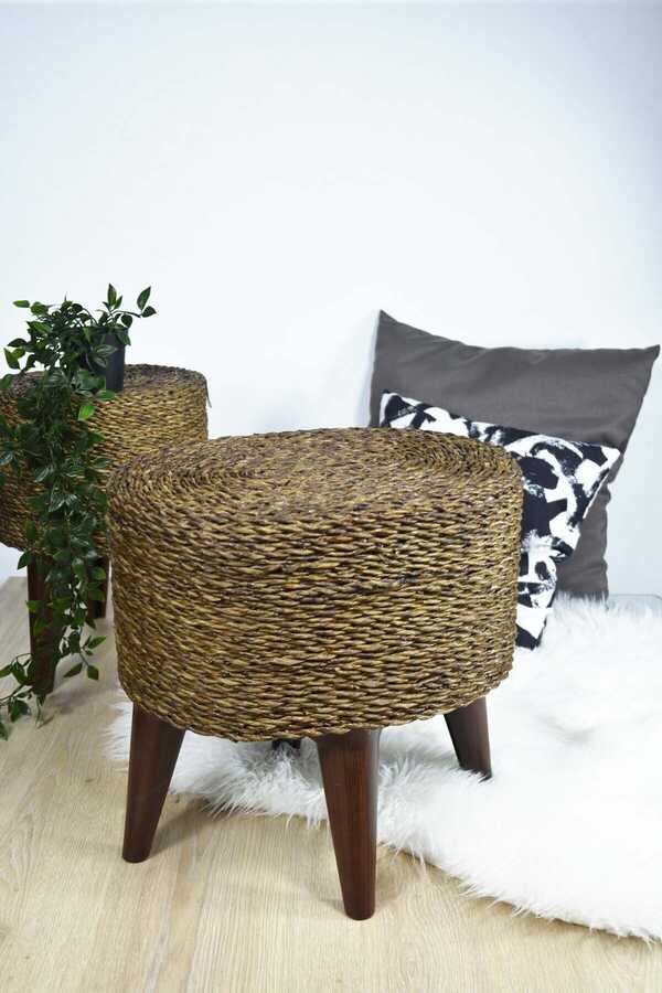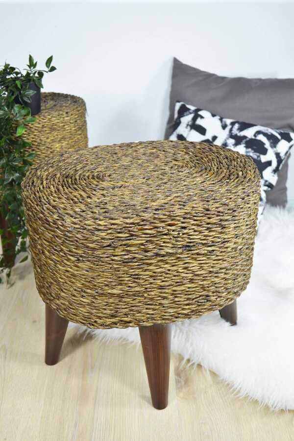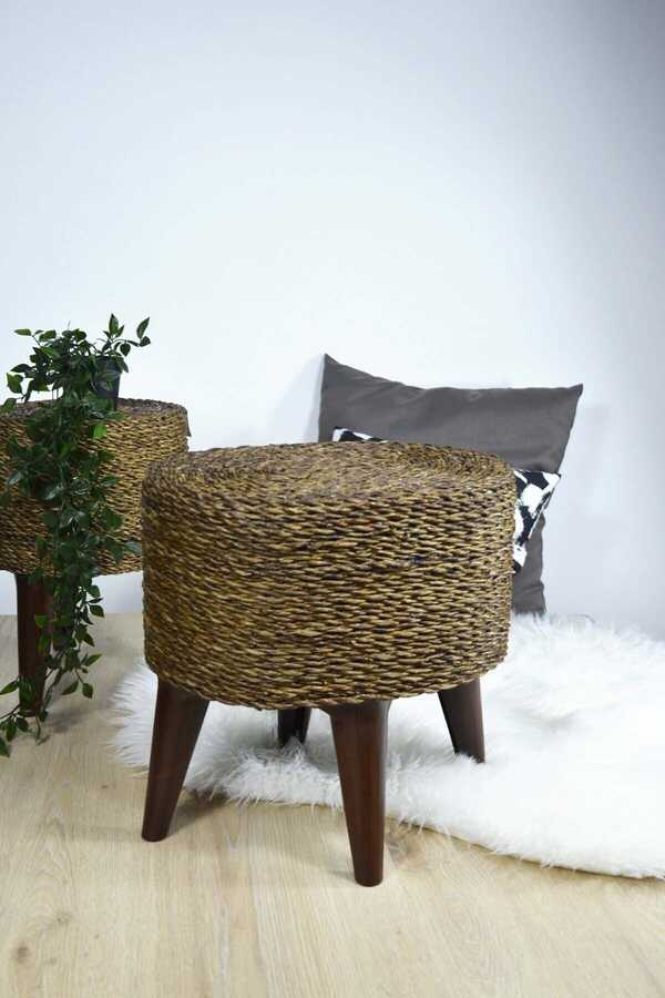 Hasır Puf Ayaklı Ahşap Oval