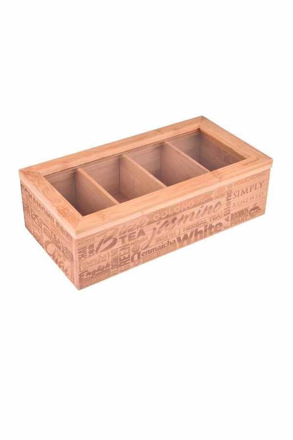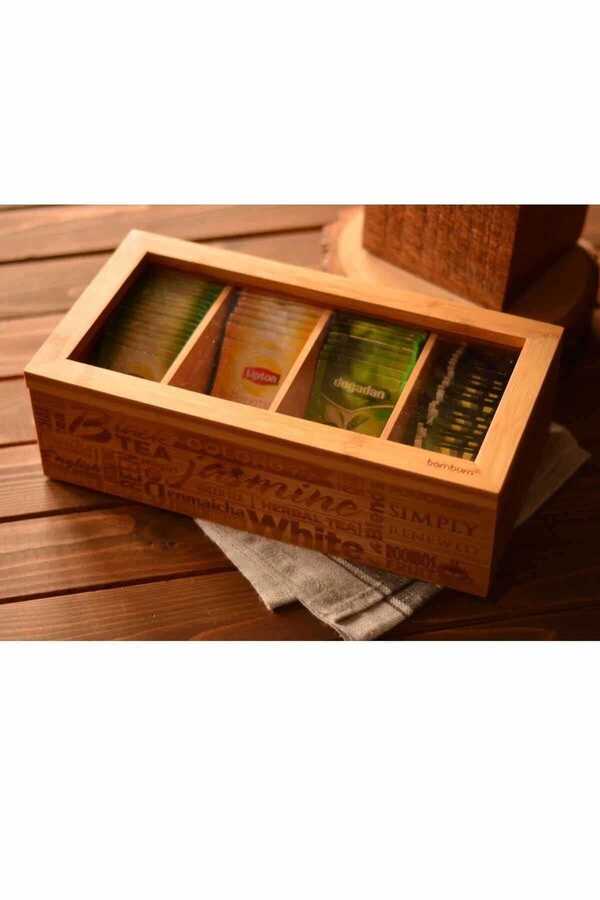 Ebat: 31x16.3x9.5 cm Bambum Jansen 4 Bölmeli Çay Kutusu, geniş ve sağlam yapısı, şeffaf kapağı, bambudan mamul bölme duvarları ve 4 bölmeli tasarımı sayesinde poşet çaylarınızı ilk günkü tazeliğinde korurken şık ve zengin duruşu ile kullanım alanlarınıza zarafet katacak. Jansen’in dış yüzeyindeki lazer yakma tipografik desenler mutfağınıza yeni bir soluk getirecek.