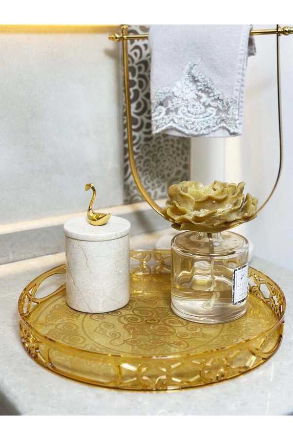 Materyal Açıklama: Kaliteli Pleksi - Akrilik. Sağlığa Zararlı Madde İçermez. Uzun Ömürlü Kullanım İçin Elde Yıkanması Tavsiye Edilir. Mutfağınızda, Banyonuzda, Çalışma Masanızda, Makyaj masanızda Çok Amaçlı Kullanabilirsiniz. Ebat: Çap : 32,5 Derinlik : 4 cm
